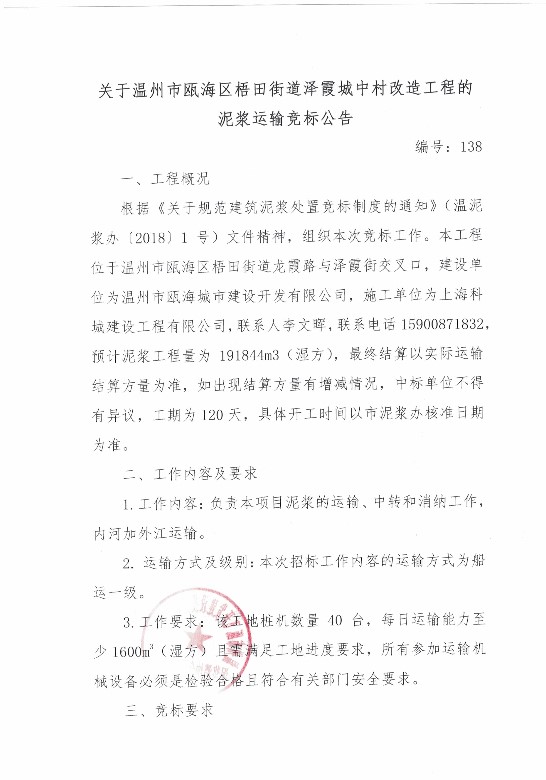 ¹ØÓÚÎÂÖÝÊÐÑöÒå½ÖµÀ¶´ÇÅÖÆ¸ï»ùµØ¸ÄÔìB9Ò»ÆÚ¡¢B5µØ¿é¼°ÑöзÑÓÉì¶Î½¨É蹤³ÌBTÏîÄ¿ÄཬÔËÊäÏîÄ¿µÄ¾º±ê¹«¸æ