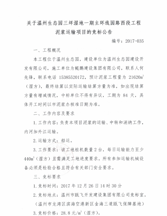¹ØÓÚÎÂÖÝÉú̬԰Èýˆ”ʪµØÒ»ÆÚÖ÷»·Ïß԰·Î÷¶Î¹¤³ÌÄཬÔËÊäÏîÄ¿µÄ¾º±ê¹«¸æ