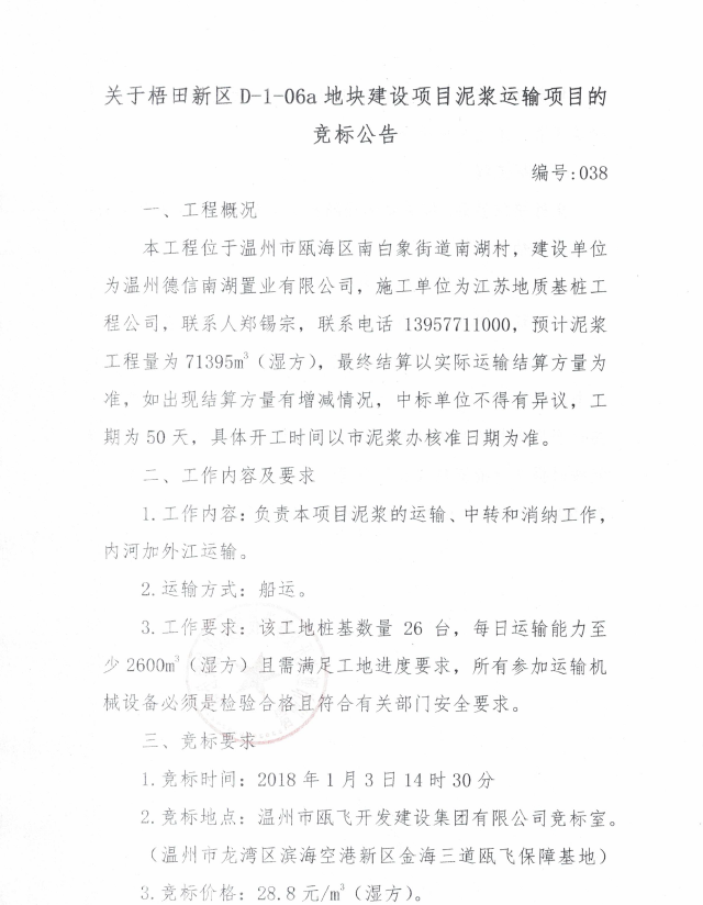 ¹ØÓÚÎÂÖÝÊÐÄÏÌÁ±±Èë¿Ú¸ÄÔ칤³ÌÄཬÔËÊäÏîÄ¿µÄ¾º±ê¹«¸æ