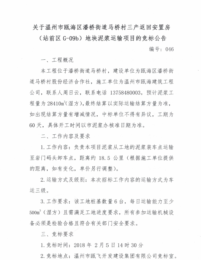 ¹ØÓÚÎÂÖÝÊÐ걺£ÇøÅËÇŽֵÀÂíÇÅ´åÈý²ú·µ»Ø°²Ö÷¿£¨Õ¾Ç°ÇøG-09b£©µØ¿éÄཬÔËÊäÏîÄ¿µÄ¾º±ê¹«¸æ