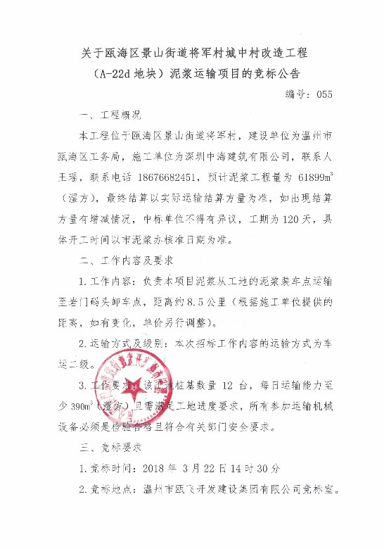 ¹ØÓÚ걺£Çø¾°É½½ÖµÀ½«¾ü´å³ÇÖдå¸ÄÔ칤³Ì£¨A-22dµØ¿é£©ÄཬÔËÊäÏîÄ¿µÄ¾º±ê¹«¸æ