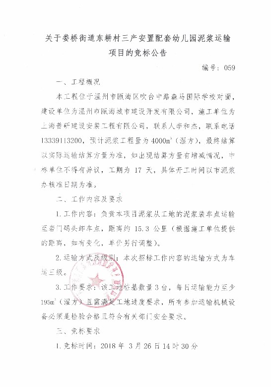 ¹ØÓÚվǰH-17µØ¿éÓ×¶ùÔ°ÄཬÔËÊäÏîÄ¿µÄ¾º±ê¹«¸æ