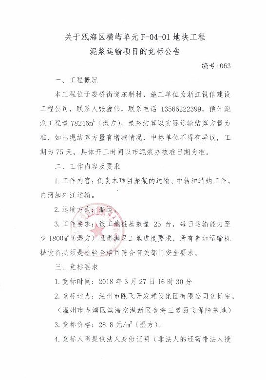 ¹ØÓÚ걺£ÇøºáÓìµ¥ÔªF-04-01µØ¿é¹¤³ÌÄཬÔËÊäÏîÄ¿µÄ¾º±ê¹«¸æ