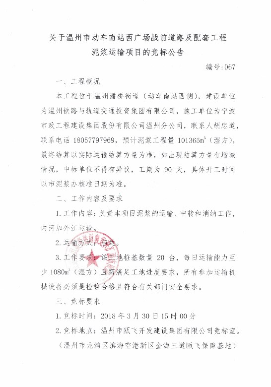 ¹ØÓÚÎÂÖÝÊж¯³µÄÏÕ¾Î÷¹ã³¡Õ½Ç°µÀ·¼°ÅäÌ×¹¤³ÌÄཬÔËÊäÏîÄ¿µÄ¾º±ê¹«¸æ