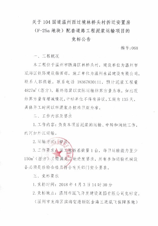 ¹ØÓÚ104¹úµÀÎÂÖÝÎ÷¹ý¾³ÁÖÇÅÍ·´å²ðǨ°²Ö÷¿£¨F-25aµØ¿é£©ÅäÌ×µÀ·¹¤³ÌÄཬÔËÊäÏîÄ¿µÄ¾º±ê¹«¸æ