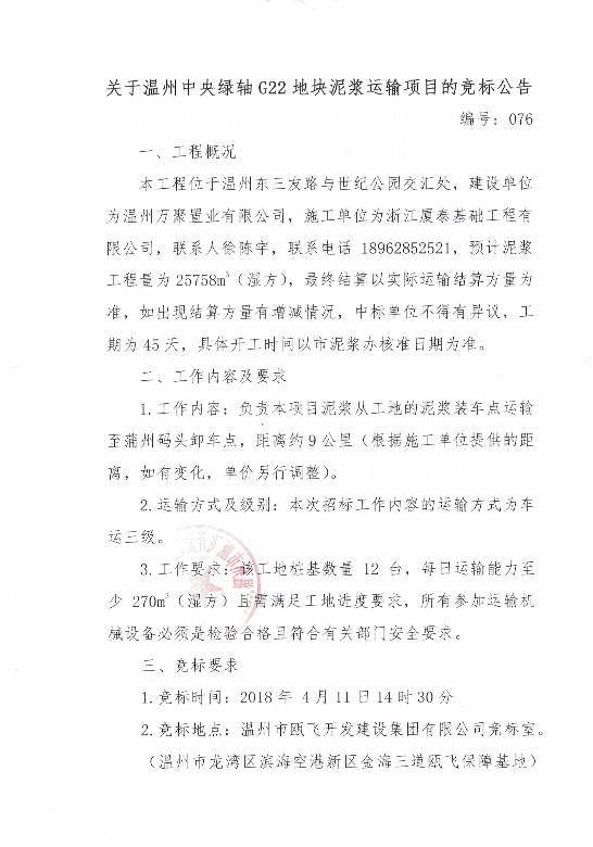 ¹ØÓÚÎÂÖÝÖÐÑëÂÌÖáG22µØ¿éÄཬÔËÊäÏîÄ¿µÄ¾º±ê¹«¸æ
