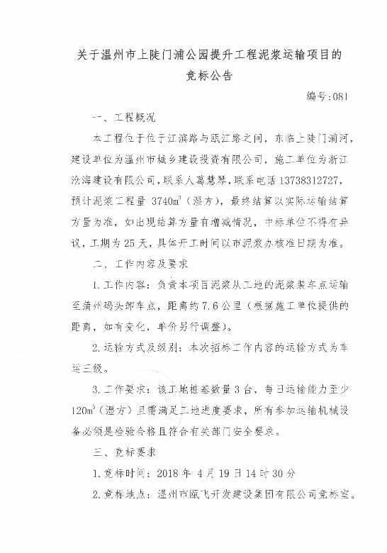 ¹ØÓÚÎÂÖÝÊÐÉ϶¸ÃÅÆÖ¹«Ô°ÌáÉý¹¤³ÌÄཬÔËÊäÏîÄ¿µÄ¾º±ê¹«¸æ