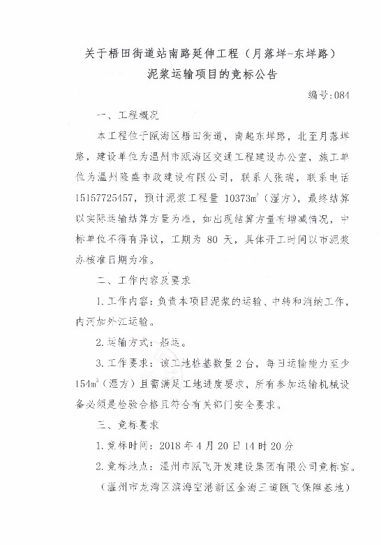 ¹ØÓÚÎàÌï½ÖµÀÕ¾ÄÏ·ÑÓÉ칤³Ì£¨ÔÂÂ䈔-¶«ˆ”·£©ÄཬÔËÊäÏîÄ¿µÄ¾º±ê¹«¸æ