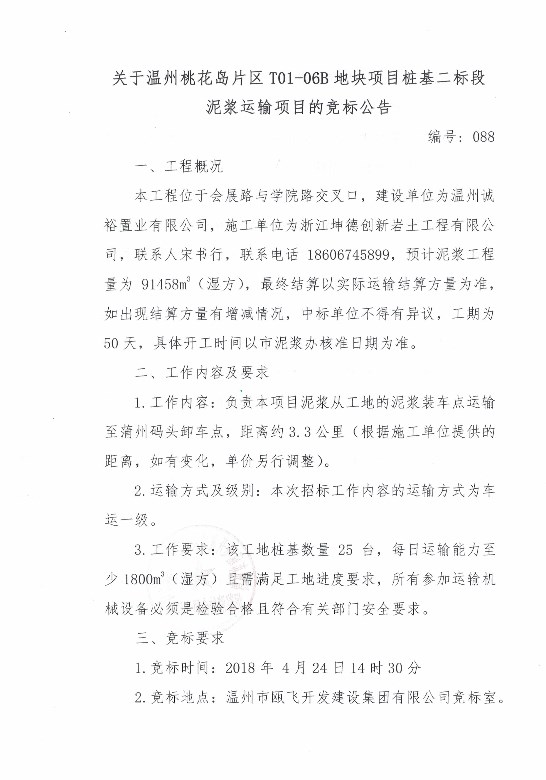 ¹ØÓÚÎÂÖÝÌÒ»¨µºÆ¬ÇøT01-06BµØ¿éÏîĿ׮»ù¶þ±ê¶ÎÄཬÔËÊäÏîÄ¿µÄ¾º±ê¹«¸æ