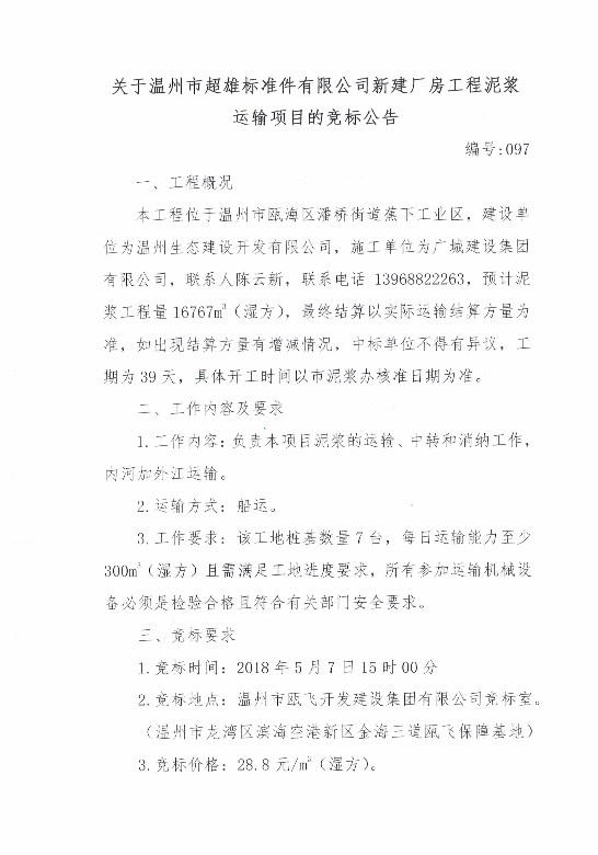 ¹ØÓÚÎÂÖÝÊг¬ÐÛ±ê×¼¼þÓÐÏÞ¹«Ë¾Ð½¨³§·¿¹¤³ÌÄཬÔËÊäÏîÄ¿µÄ¾º±ê¹«¸æ