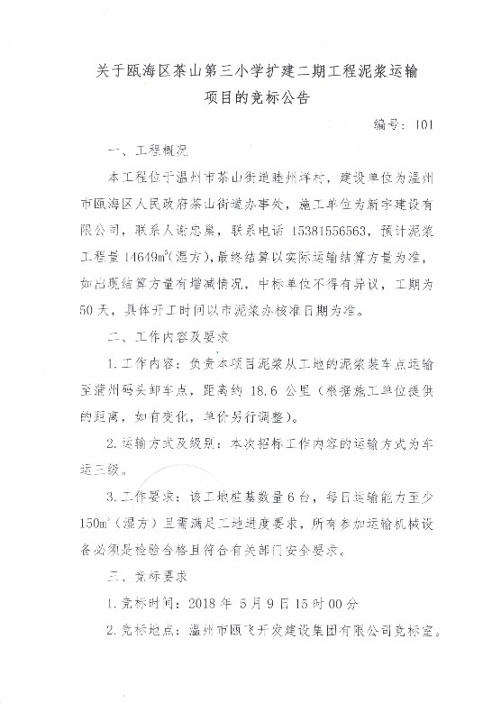¹ØÓÚ걺£Çø²èɽµÚÈýСѧÀ©½¨¶þÆÚ¹¤³ÌÄཬÔËÊäÏîÄ¿µÄ¾º±ê¹«¸æ