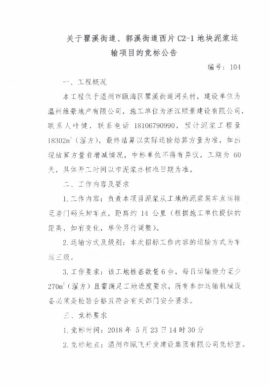 ¹ØÓÚöÄϪ½ÖµÀ¡¢¹ùϪ½ÖµÀÎ÷ƬC2-1µØ¿éÄཬÔËÊäÏîÄ¿µÄ¾º±ê¹«¸æ