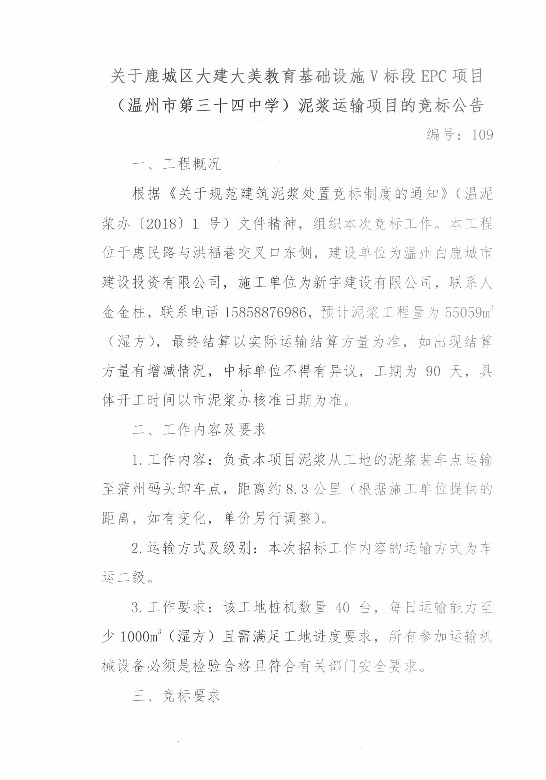 ¹ØÓÚ¹³ÇÇø´ó½¨´óÃÀ½ÌÓý»ù´¡ÉèÊ©V±ê¶ÎEPCÏîÄ¿£¨ÎÂÖÝÊеÚÈýÊ®ËÄÖÐѧ£©ÄཬÔËÊäÏîÄ¿µÄ¾º±ê¹«¸æ