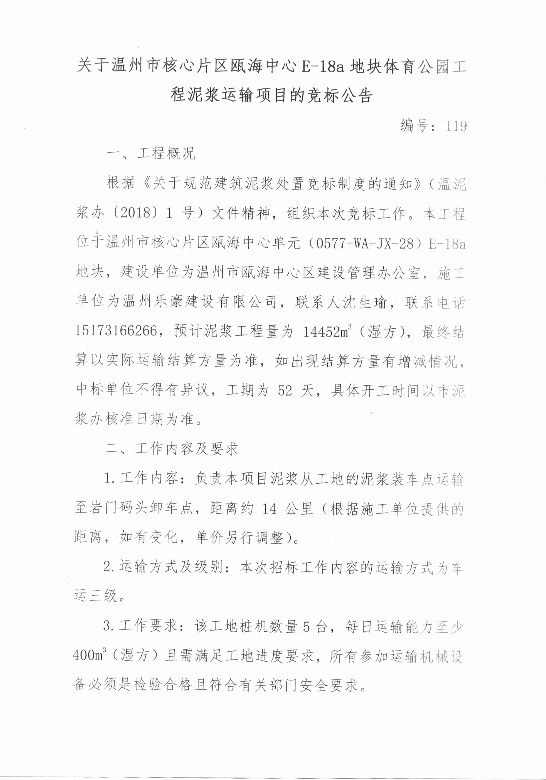 ¹ØÓÚÎÂÖÝÊкËÐÄÆ¬Çøê±º£ÖÐÐÄE-18aµØ¿éÌåÓý¹«Ô°¹¤³ÌÄཬÔËÊäÏîÄ¿µÄ¾º±ê¹«¸æ