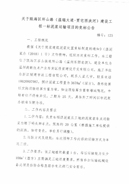 ¹ØÓÚ걺£Çø»·É½Â·£¨ÎÂÈð´óµÀ-¼ÖÕ¬Î÷䤺ӣ©½¨É蹤³ÌÒ»±êÄཬÔËÊäÏîÄ¿µÄ¾º±ê¹«¸æ